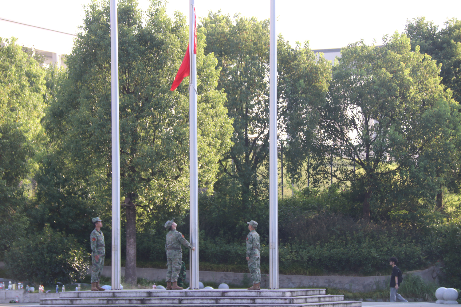 清晨7時(shí),升旗儀式準(zhǔn)時(shí)開始。當(dāng)雄壯的《義勇軍進(jìn)行曲》響起,五星紅旗冉冉升起,迎風(fēng)飄揚(yáng)。朝陽下,新生們眼神堅(jiān)定,在國旗下默默立下“不怕苦、不怕累,圓滿完成軍訓(xùn)”的誓言,胸中的愛國情懷與青春熱血一同沸騰。