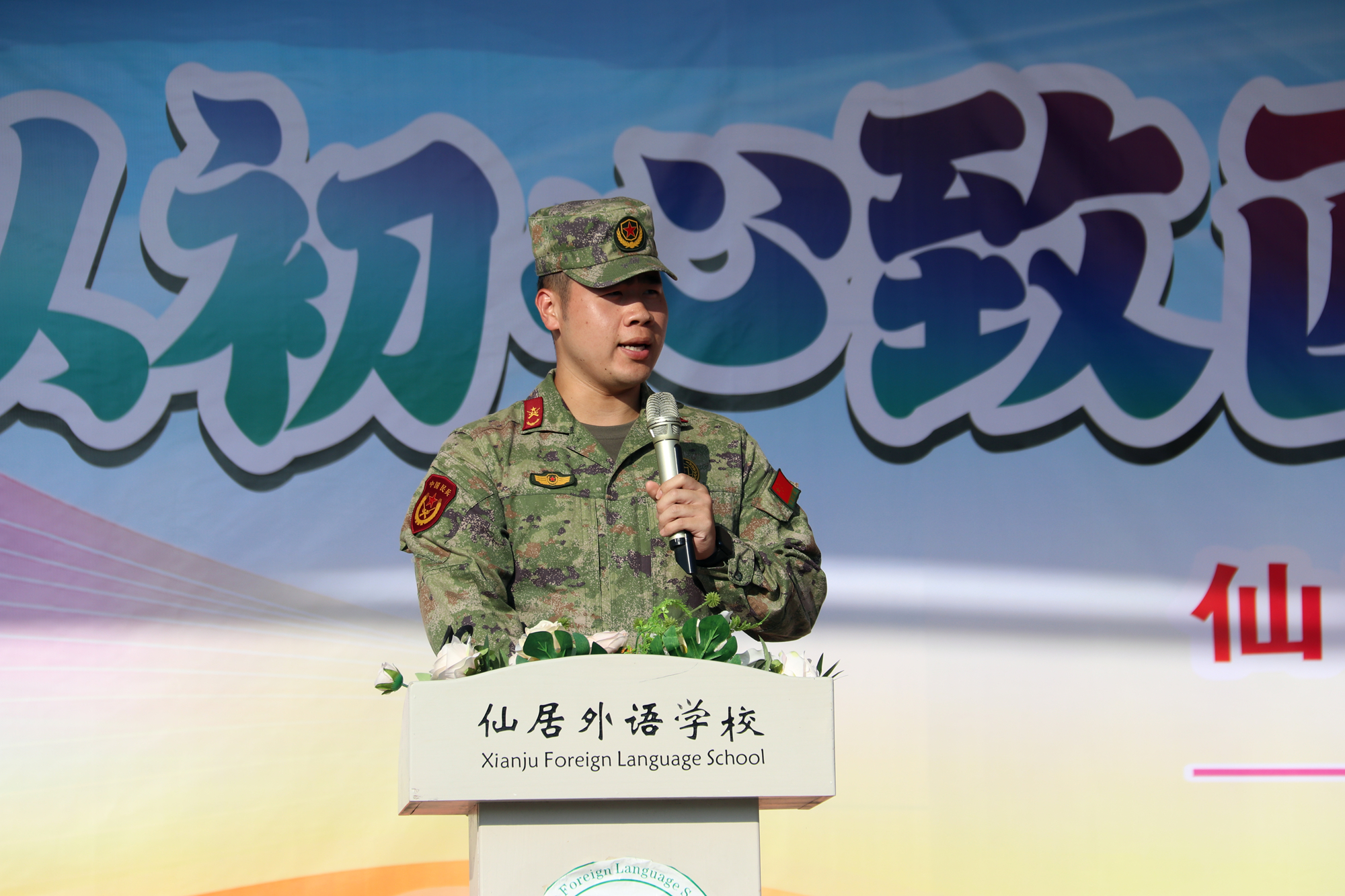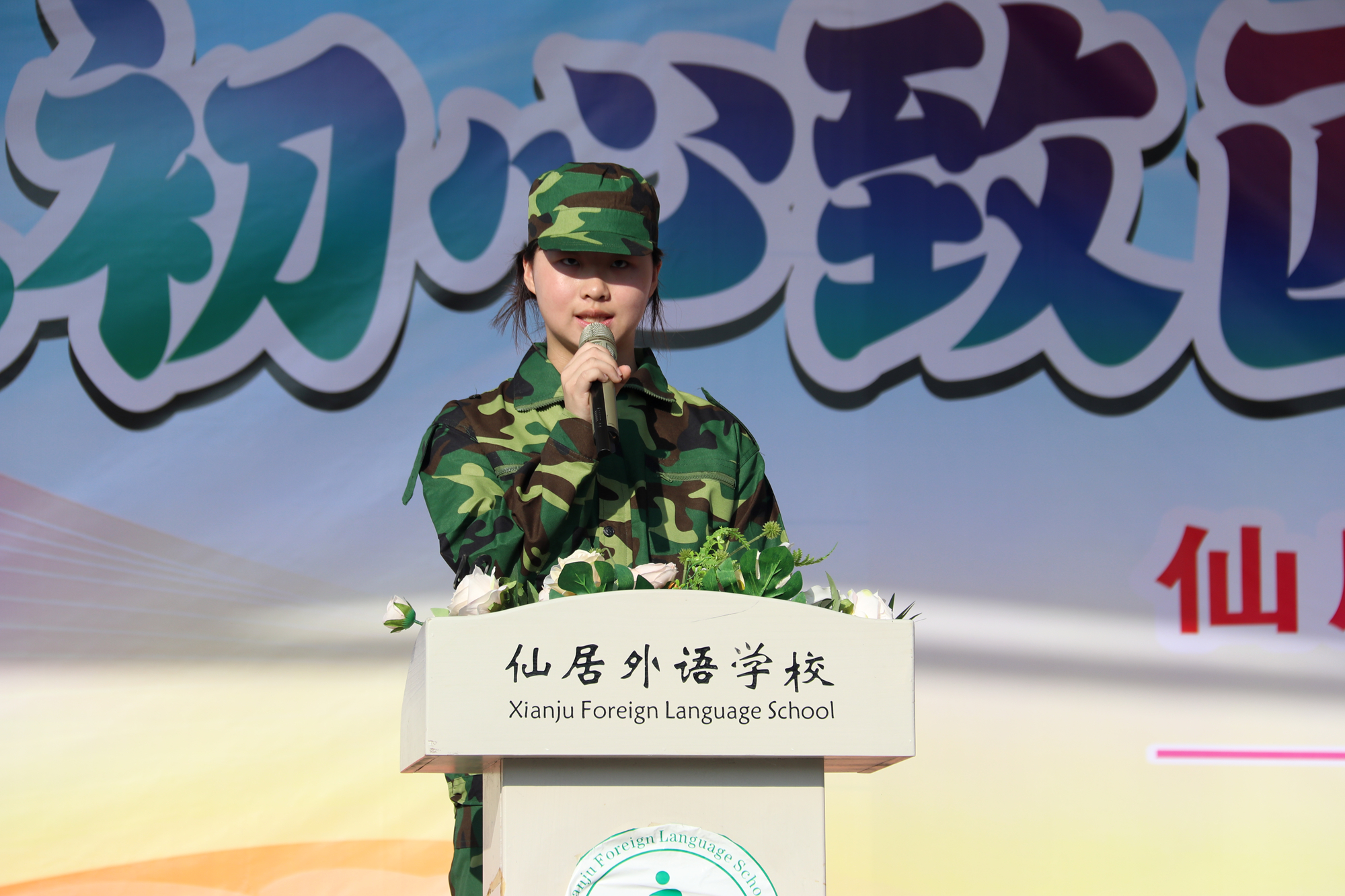 “軍訓(xùn)是高中的第一課,也是我們褪去稚氣、學(xué)會(huì)擔(dān)當(dāng)?shù)?lsquo;試煉場’。”來自高一2班的學(xué)生代表林烝汝站在主席臺(tái)上,聲音清亮而堅(jiān)定。她分享了對(duì)軍訓(xùn)的期待:“我們會(huì)聽從教官指揮,認(rèn)真完成每一個(gè)動(dòng)作;會(huì)團(tuán)結(jié)同學(xué),在烈日下相互鼓勵(lì);更會(huì)把軍訓(xùn)中磨練出的毅力,化作未來三年攻克學(xué)業(yè)難關(guān)的動(dòng)力。”林同學(xué)的發(fā)言道出了全體新生的心聲,臺(tái)下響起熱烈的掌聲。