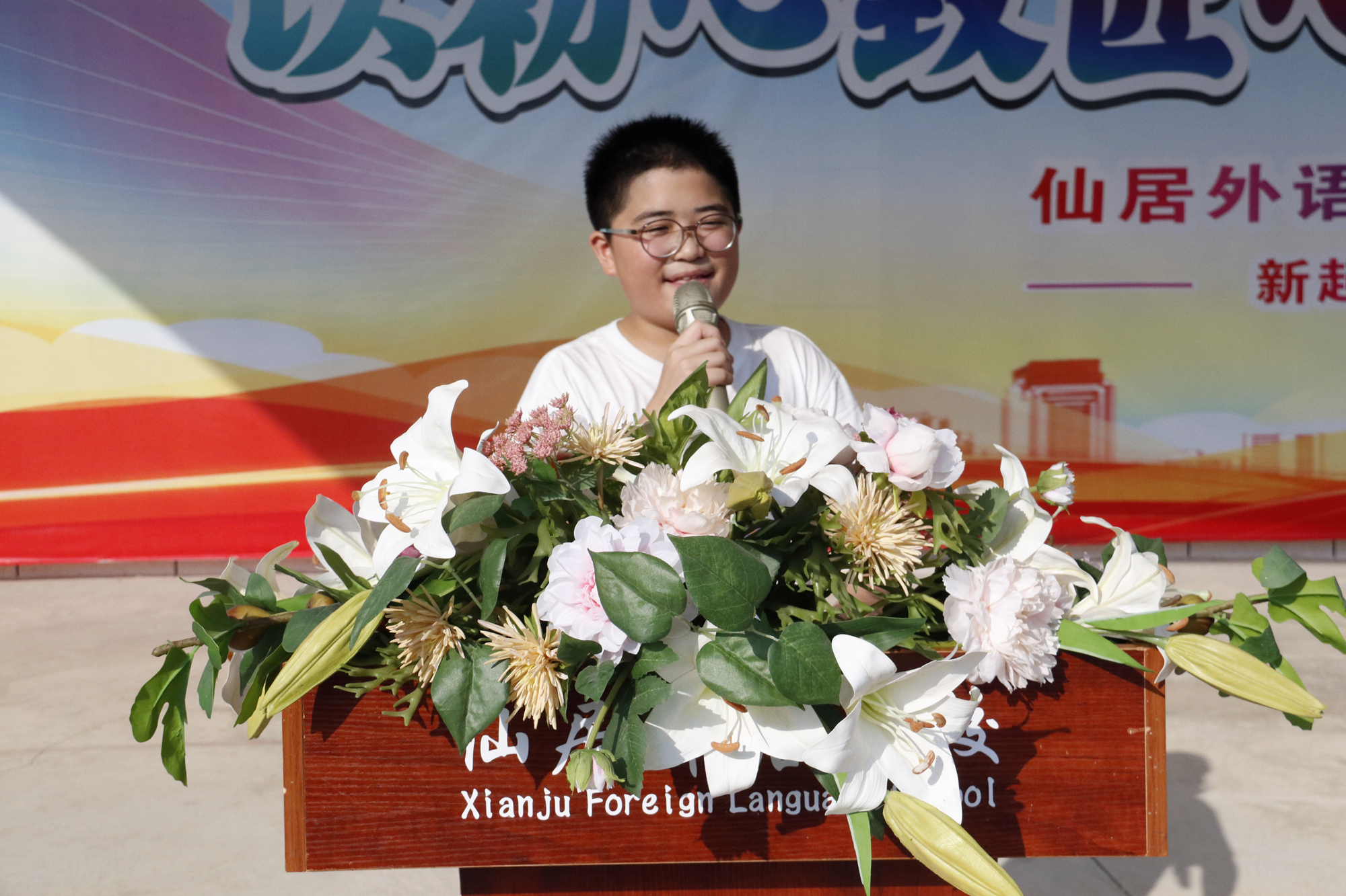 學會生活——給成長調好溫暖底色,學會求知——為青春注入明亮亮色,學會做人——讓人生擁有厚重的原色,用“生活”“求知”“做人”三原色,繪制青春的畫卷是初一新生代表俞奕侖對未來初中生活的憧憬,他的發(fā)言充滿朝氣,稚嫩的聲音里滿是堅定,展現出新一代仙外學子的昂揚風貌。