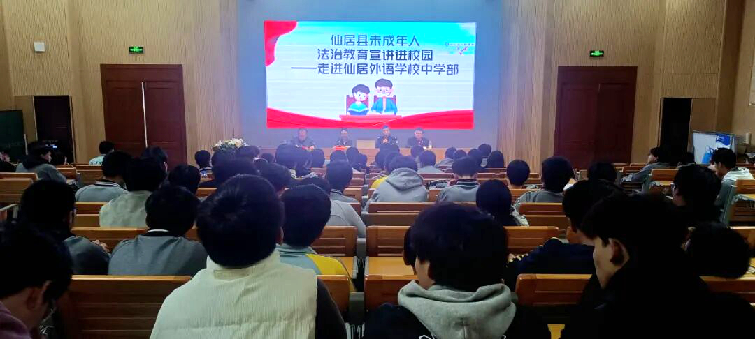 仙外校園網(wǎng)訊 為強(qiáng)化未成年人法治教育,筑牢青少年成長安全防線,引導(dǎo)學(xué)生樹立正確法治觀念,11月11日下午,我校中學(xué)部階梯教室開展了“仙居縣未成年人法治教育宣講進(jìn)校園活動”。本次活動特邀公安、法院系統(tǒng)骨干力量聯(lián)袂授課,為同學(xué)們帶來了一場干貨滿滿的法治盛宴!活動由中學(xué)部副校長李朝輝主持。